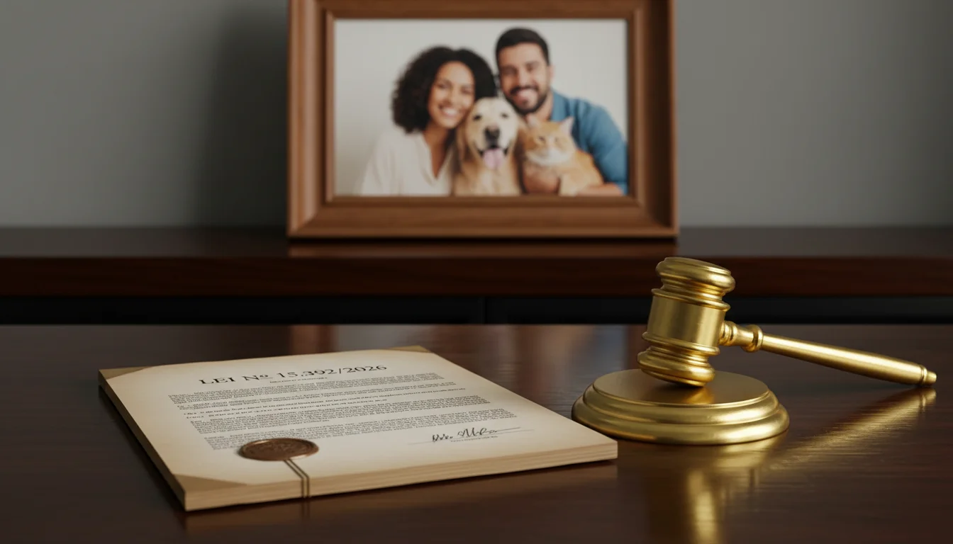 A sanção da Lei 15.392/2026, publicada no Diário Oficial da União em 16 de abril de 2026, marca o fim de uma era de incertezas jurídicas para milhões de lares brasileiros. Originada do Projeto de Lei 941/2024, a nova legislação estabelece o marco regulatório vigente para a custódia e a manutenção financeira de animais de estimação em casos de dissolução de união estável ou divórcio.